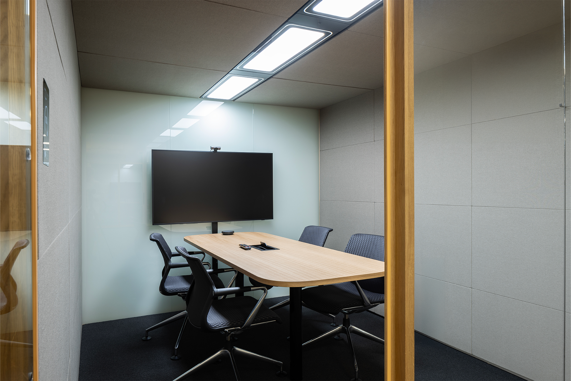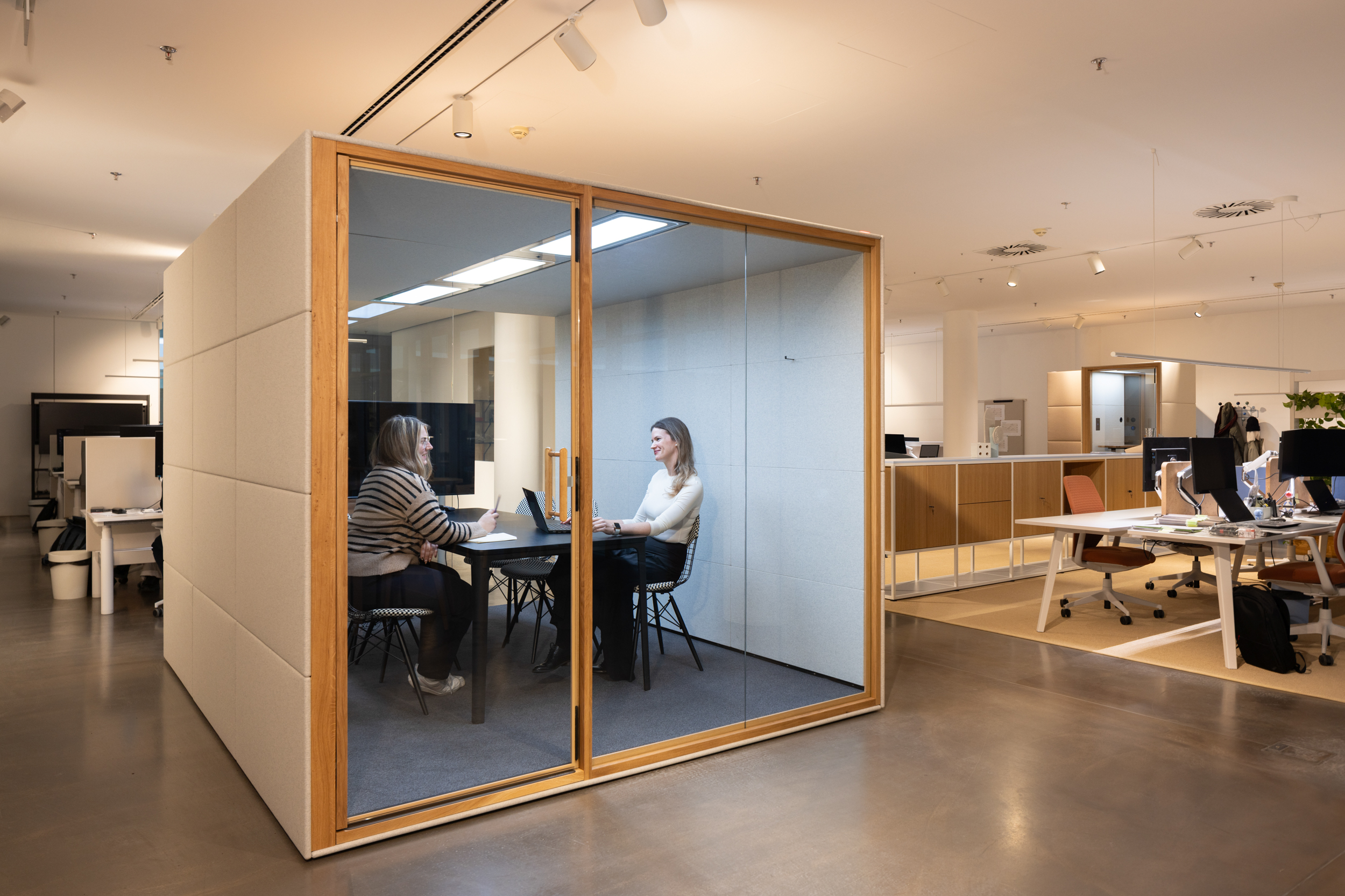 Eine Kabine mit Privatsphäre für mittelgroße Meetings mit Premium-Akustik